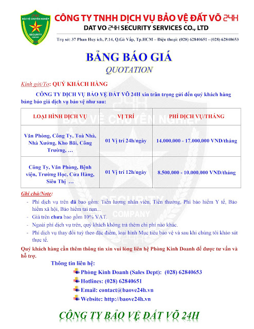 TY TNHH DỊCH VỤ BẢO VỆ ĐẤT VÕ 24H